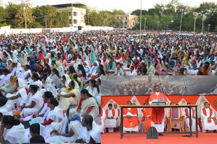 Good Friday 2024: रांची-गुड फ्राइडे (पुण्य शुक्रवार) की आराधना आज शुक्रवार को लोयला मैदान में हुई. शाम 4:30 बजे से हुई इस आराधना में मुख्य अनुष्ठक आर्चबिशप विसेंट आईंद थे. आराधना के दौरान अपने उपदेश में आर्चबिशप ने कहा कि हम ख्रीस्तीयों के लिए गुड फ्राइडे यीशु को धन्यवाद करने का दिन है. धन्यवाद इसलिए क्योंकि हम सबके बदले उन्होंने खुद को क्रूस पर अर्पित कर दिया. इससे पूर्व पुरोहितों ने आज के समारोह की धर्म विधि पूरी की. मौके पर फादर आनंद डेविड सहित अन्य पुरोहित, संत अल्बर्ट के फादर व बड़ी संख्या में आम विश्वासी शामिल थे.