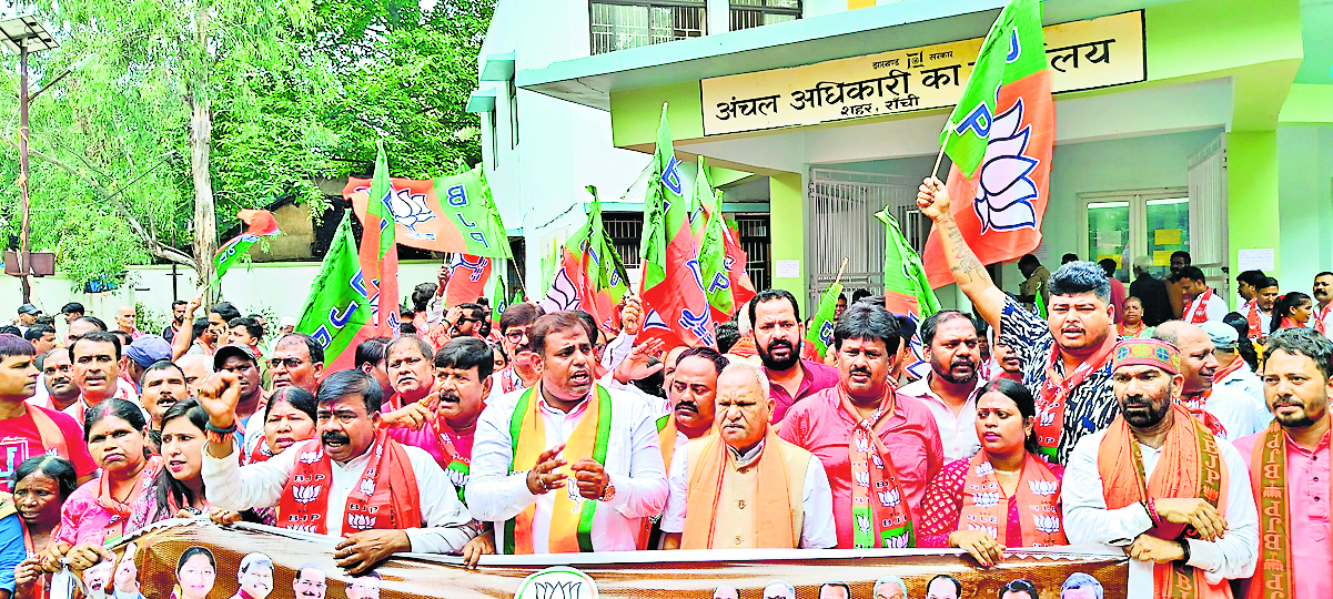 रांची सदर अंचल में ओम प्रकाश, रोशनी खलको, संजय जयसवाल, राजू सिंह अनिता वर्मा, अशोक मिश्रा, सुजीत शर्मा, सूर्यप्रताप, बिनोद महतो, ऋषि ककड़, अरगोड़ा अंचल में अजय साह, सुबोध सिंह गुड्डू, पप्पू कुमार चौधरी, पीयूष विजयवर्गीय, विशाल साहू, इंद्रजीत यादव, रामजी प्रसाद, बड़गाईं अंचल में समरी लाल, संजीव विजयवर्गीय, केके गुप्ता, रणधीर सिंह, सुभाष अग्रवाल, राम लगन राम, हेहल अंचल में बालमुकुंद सहाय, सत्यनारायण सिंह, मनोज मिश्रा, रमेश सिंह, अमित सिंह, ललित ओझा, जितेंद्र वर्मा, सुबेश पांडेय, ओम प्रकाश पांडेय, उमेश यादव आदि ने प्रदर्शन किया. वहीं, कार्यकारी अध्यक्ष डॉ रविंद्र कुमार राय, पूर्व मुख्यमंत्री अर्जुन मुंडा, रघुवर दास व चंपाई सोरेन के अलावा पार्टी के सांसद व विधायकों ने अलग-अलग प्रखंडों में प्रदर्शन का नेतृत्व किया.डिस्क्लेमर: यह प्रभात खबर समाचार पत्र की ऑटोमेटेड न्यूज फीड है. इसे प्रभात खबर डॉट कॉम की टीम ने संपादित नहीं किया है