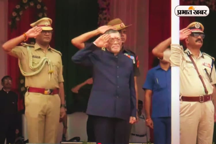 Independence Day: राजधानी रांची के मोरहाबादी मैदान में 79वें स्वतंत्रता दिवस पर राज्यपाल संतोष कुमार गंगवार ने ध्वजारोहण किया. ध्वजारोहण के तुरंत बाद राष्ट्रगान की धुन से आसपास का माहौल देशभक्ति के रंग में रंग गया. ध्वजारोहण के बाद राज्यपाल का संबोधन शुरू हुआ. शहीदों को नमन करते हुए राज्यपाल ने अपने संबोधन की शुरुआत की. साथ ही दिशोम गुरु शिबू सोरेन के प्रति श्रद्धांजलि अर्पित की.