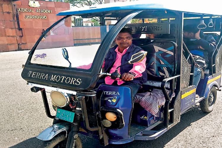 ई-रिक्शा चला रहे हरिहर बड़ाइक