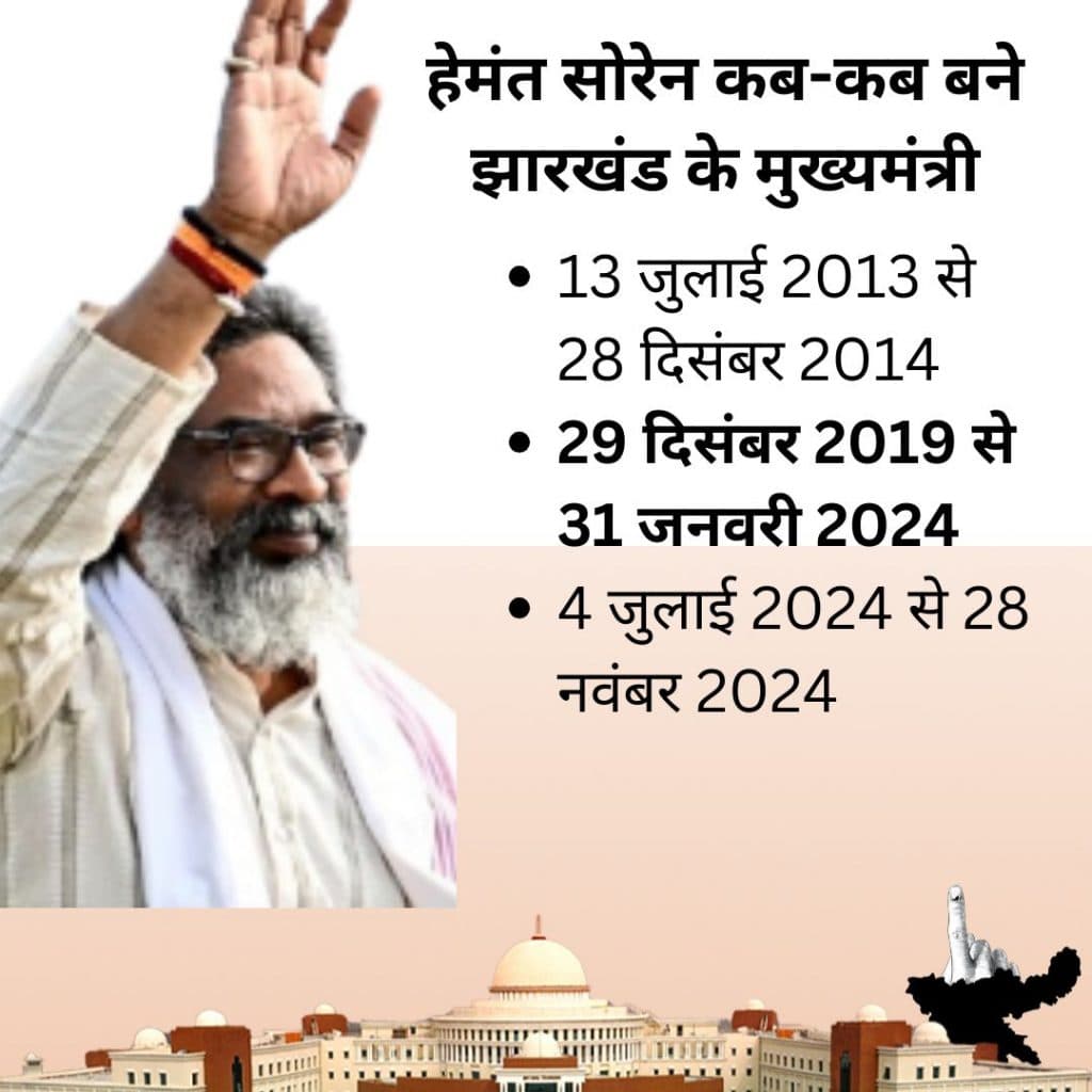 हेमंत सोरेन ने अपने पिता शिबू सोरेन का भी रिकॉर्ड तोड़ दिया. शिबू सोरेन 3 बार झारखंड के मुख्यमंत्री बने. हालांकि, वह कभी अपना कार्यकाल पूरा नहीं कर पाए. हेमंत सोरेन के नेतृत्व में पहली बार वर्ष 2019 में झामुमो-कांग्रेस-राजद गठबंधन को पूर्ण बहुमत मिला, लेकिन कथित जमीन घोटाला मामले में उन्हें जेल जाना पड़ा और लगाातर 5 साल सरकार चलाने का रघुवर दास का रिकॉर्ड वह नहीं तोड़ पाए.
