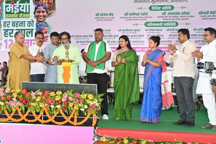 नामकुम के खोजाटोली का ट्रेनिंग ग्राउंड बुधवार को रांची, खूंटी, गुमला, सिमडेगा और लोहरदगा की महिला लाभुकों से खचाखच भरा हुआ था. झारखंड मुख्यमंत्री मंईयां सम्मान योजना की लाभुकों के चेहरे पर खुशियों के उपहार का उत्साह साफ झलक रहा था. मुख्यमंत्री हेमंत सोरेन ने इन पांचों जिलों की बहनों को मंईयां सम्मान योजना का तोहफा दिया. राज्य के 19 जिलों की महिला लाभुकों के खाते में एक-एक हजार रुपए भेजे जा चुके हैं. हेमंत सोरेन सरकार इस योजना के तहत सालाना 12 हजार रुपए महिला लाभुकों को दे रही है.