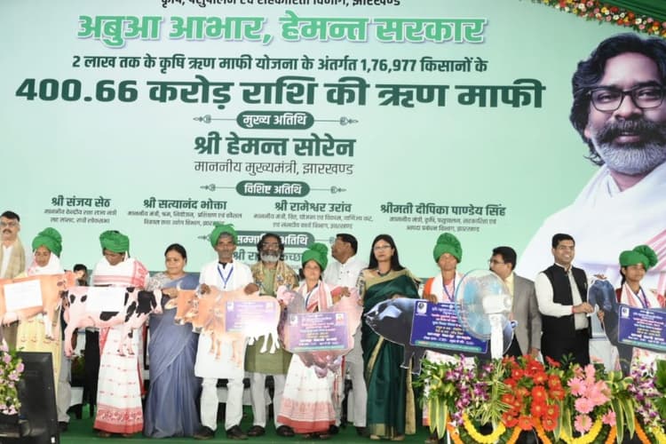 झारखंड के कृषि, पशुपालन एवं सहकारिता विभाग की ओर से गुरुवार को धुर्वा के प्रभाततारा मैदान में झारखंड कृषि ऋण माफी योजना कार्यक्रम का आयोजन किया गया था. सीएम हेमंत सोरेन ने 400 करोड़ से अधिक की कृषि ऋण की राशि हस्तांतरित की. 1 लाख 76 हजार 977 किसानों के 400 करोड़ 66 लाख रुपए की ऋण अदायगी राशि को उन्होंने डीबीटी के जरिए हस्तांतरित कर दिया. दो लाख तक के कृषि लोन को कृषि ऋण माफी योजना के तहत माफ कर किसानों को हेमंत सोरेन सरकार ने बड़ा तोहफा दिया है.
