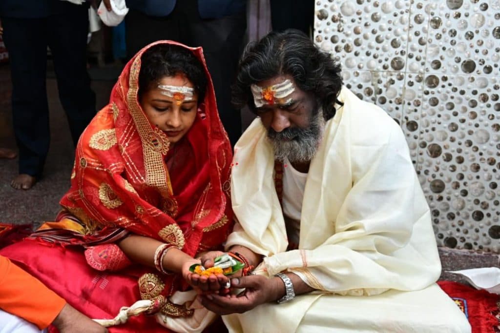 पत्नी संग पूजा अर्चना करते सीएम हेमंत सोरेन