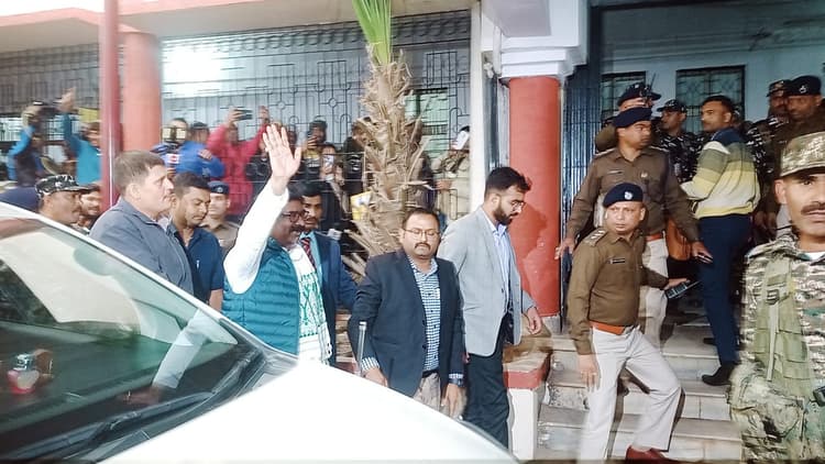 हेमंत सोरेन को गुरुवार (1 फरवरी) को कड़ी सुरक्षा के बीच ईडी की विशेष अदालत में पेश किया गया. हेमंत सोरेन ने कोर्ट परिसर में हाथ हिलाकर मुस्कुराते हुए वहां मौजूद लोगों का अभिवादन किया. हेमंत सोरेन को प्रवर्तन निदेशालय (ईडी) ने भूमि घोटाला मामले में 31 जनवरी की रात को गिरफ्तार किया था. इसके पहले झारखंड के सीएम हेमंत सोरेन से करीब आठ घंटे तक पूछताछ चली थी. ईडी के सवालों का संतोषजनक जवाब नहीं दे पाए, तो उन्हें गिरफ्तार कर लिया गया.