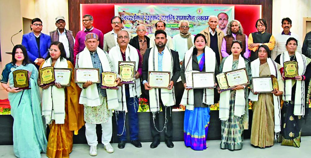 इस अवसर पर विभिन्न क्षेत्रों में उत्कृष्ट सेवा देनेवाले साहित्यकारों और संस्कृति कर्मियों को जयशंकर प्रसाद विचार मंच द्वारा महाकवि जयशंकर प्रसाद स्मृति सम्मान से सम्मानित किया गया. हिंदी साहित्य में विशिष्ट सेवा के लिए डॉ मंजू ज्योत्सना हंस, जमशेदपुर की वरिष्ठ साहित्यकार पद्मा मिश्रा और डॉ अनीता कुमारी को सम्मानित किया गया. क्षेत्रीय भाषा में उत्कृष्ट सेवा के लिए चंद्रदेव सिंह (नागपुरी), मानसिंह महतो (कुरमाली), महेंद्र नाथ गोस्वामी (खोरठा), डॉ पराग किशोर सिंह (पंचपरगनिया) और कला संस्कृति के क्षेत्र में क्षितिज कुमार राय और मनोज कपरदार को सम्मानित किया गया. वहीं साहित्य, संस्कृति,लोक कला और शिक्षा के क्षेत्र में उत्कृष्ट प्रदर्शन करनेवाले 10 प्रतिभाशाली लोगों को मंच की ओर से विशिष्ट अलंकरण सम्मान से भी सम्मानित किया गया. इसमें वरिष्ठ पत्रकार सुनील बादल, गोस्सनर कॉलेज की हिंदी विभागाध्यक्ष प्रो आशा रानी केरकेट्टा, संघ मित्रा रायगुरु, रंजना वर्मा उन्मुक्त, डॉ संजय कुमार, डॉ श्रवण कुमार सिंह, डॉ प्रियंका शर्मा, डॉ शिवानंद कुमार, डॉ सौम्या राज और लोक गायक दयामय पांडेय प्रमुख हैं.दो पुस्तकों का हुआ लोकार्पण