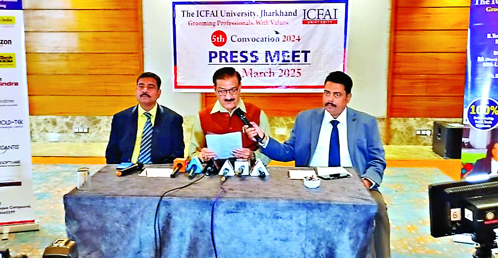 रांची. इक्फाई विवि का पांचवां दीक्षांत समारोह 21 मार्च को मनाया जायेगा. समारोह स्मार्ट सिटी कॉरपोरेशन लिमिटेड ऑडिटोरियम, जुपमी बिल्डिंग में होगा. मुख्य अतिथि झारखंड उच्च न्यायालय के मुख्य न्यायाधीश न्यायमूर्ति एमएस रामचंद्र राव होंगे. समारोह शाम 4.30 बजे शुरू होगा. कुलपति डॉ कर्नल रंजीत सिंह ने गुरुवार को पत्रकारों के बताया कि दीक्षांत समारोह में 231 डिग्रियां बांटी जायेंगी. साथ ही नौ गोल्ड व नौ सिल्वर मेडल दिये जायेंगे. 15 पीएचडी डिग्रियां भी बांटी जायेंगी.