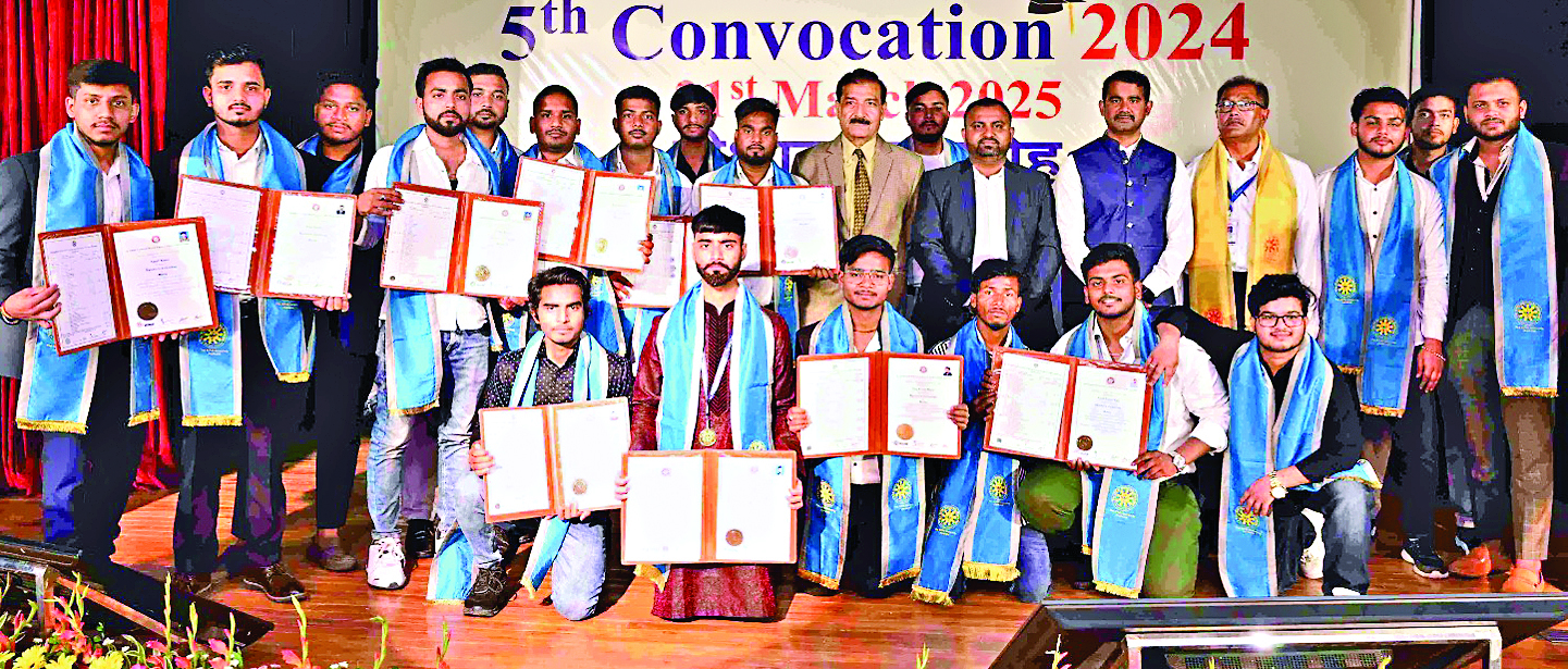 रांची. झारखंड उच्च न्यायालय के मुख्य न्यायाधीश न्यायमूर्ति एमएस रामचंद्र राव ने कहा कि स्कूल में छात्र पहले सीखते हैं और फिर परीक्षा देते हैं. वहीं जीवन में लोग चुनौतियों का सामना करते हैं और फिर उनसे सीखते हैं. मुख्य न्यायाधीश श्री राव शुक्रवार को इक्फाई विश्वविद्यालय के पांचवें दीक्षांत समारोह में बोल रहे थे. दीक्षांत समारोह में स्नातक करनेवाले 231 विद्यार्थियों को डिग्री दी गयी. इसमें 15 पीएचडी उपाधि भी शामिल हैं. इस दौरान नौ स्वर्ण पदक और नौ रजत पदक भी दिये गये. स्वर्ण व रजत पदक मुख्य न्यायाधीश न्यायमूर्ति एमएस रामचंद्र राव ने दिये. यह दीक्षांत समारोह रांची स्मार्ट सिटी कॉरपोरेशन लिमिटेड (आरएससीसीएल) ऑडिटोरियम, जुपमी बिल्डिंग धुर्वा में हुआ.