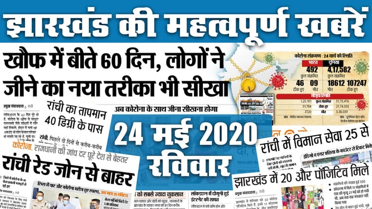 Jharkhand News, 20 July 2020, Coronavirus Latest Updates, 20 Important jharkhand news today : बढ़ते मामलों के बीच आईसीएमआर ने अलर्ट कर दिया है और कहा है कि देश में क्म्युनिटी ट्रांसमिशन शुरू हो चुका है.रविवार को झारखंड में कुल 189 नये संक्रमित पाए गए है. जिनमें पांच की मौत भी हो गई. ऐसे में आइये जानते हैं राज्य के प्रमुख शहर रांची, जमशेदपुर, धनबाद और देवघर समेत अन्य जिलों की 20 महत्वपूर्ण खबरों को..