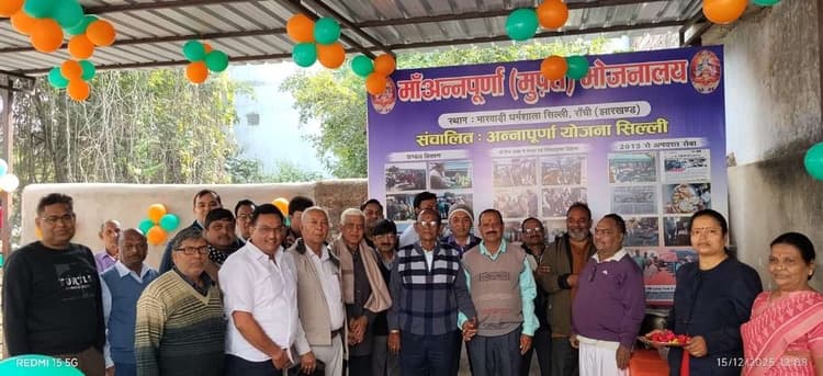 सिल्ली. सिल्ली मारवाड़ी धर्मशाला में सोमवार को अन्नपूर्णा भोजनालय द्वारा संचालित मां अन्नपूर्णा मुफ्त भोजनालय के नये शेड का शुभारंभ किया गया. कार्यक्रम के मुख्य अतिथि सिल्ली अस्पताल के सेवानिवृत्त चिकित्सा पदाधिकारी डॉ विद्यानंद चौधरी, राजा पुष्पेंद्र नाथ सिंहदेव, धीरेंद्र प्रसाद साहू, कृष्ण कुमार मिश्रा, अजीत साहू, आरएसएस के खंड व्यवस्था प्रमुख रत्नेश प्रसाद आदि ने फीता काट कर नये भोजनालय शेड का उद्घाटन किया. मौके पर संस्था द्वारा अतिथियों के हांथो गरीब एवं असहाय वृद्ध जनों के बीच कंबल का वितरण किया गया. संस्था की ओर से गोपी कृष्ण अग्रवाल एवं रमेश जालान ने डॉ वीएन चौधरी को शाॅल ओढ़ा कर व स्मृति चिह्न भेंट कर सम्मानित किया. इस मौके डॉ बीएन चौधरी ने कहा कि मां अन्नपूर्णा मुफ्त भोजनालय द्वारा गरीबों एवं असहाय लोगों के बीच मुफ्त भोजन का वितरण विगत 12 वर्षों से लगातार कर रही जो सराहनीय है. उन्होंने अन्नपूर्णा भोजनालय के सभी सदस्यों का आभार व्यक्त किया. मुफ्त भोजनालय के संचालक सह आरएसएस के खंड सेवा प्रमुख सह स्थानीय व्यवसायी प्रकाश अग्रवाल ने बताया कि स्थानीय व्यवसायी एवं समाजसेवियों के सहयोग से पिछले 18 मार्च 2013 को इसको स्थापित किया गया था. तत्कालीन उप मुख्यमंत्री सुदेश कुमार महतो के हाथों भोजनालय का शुभारंभ किया गया था. यहां प्रतिदिन 40 से अधिक वृद्ध एवं असहाय लोगों को दोपहर को मुफ्त भोजन कराया जाता है. इस मौके पर पुष्पा देवी, गायत्री कुमारी, दुर्गा प्रसाद अग्रवाल, अजित साहु, राजेन्द्र प्रसाद साय, नारायण अग्रवाल, विजय जालान, प्रवीण अग्रवाल, मदन सिंघानिया, संजीव भगत, गोपाल केडिया, जोहर चौधरी समेत कई सदस्य उपस्थित थे.