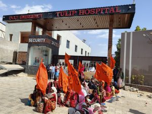 ट्यूलिप हॉस्पिटल के समक्ष मजदूरों का अनिश्चितकालीन धरना-प्रदर्शन*हॉस्पिटल प्रबंधन के ऊपर ढाई लाख बकाया का आरोप