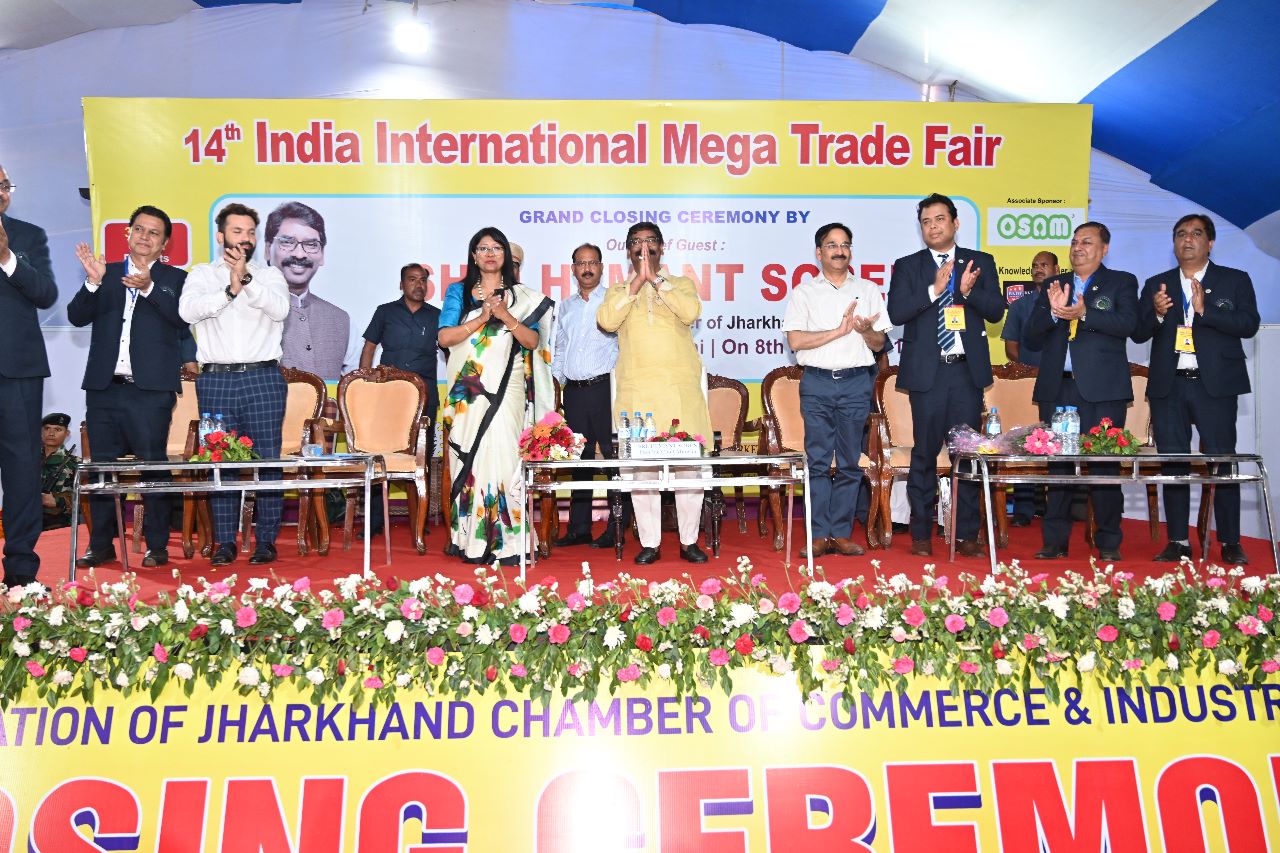 रांची: सीएम हेमंत सोरेन ने कहा कि इस बार इंडिया इंटरनेशनल मेगा ट्रेड फेयर में देश के उद्यमियों के साथ-साथ विदेशों के उद्यमियों को भी भागीदारी निभाने का मौका मिला है. इस तरह का आयोजन राज्य में उद्योग को बढ़ाने का बेहतर प्रयास है. हमारी सरकार चाहती है कि इस तरह का प्रयास निरंतर होता रहे. मुख्यमंत्री ने आज मोरहाबादी मैदान में झारखंड चेंबर ऑफ कॉमर्स एवं जीएस मार्केटिंग के तत्वावधान में आयोजित 14वां इंडिया इंटरनेशनल मेगा ट्रेड फेयर के समापन समारोह को बतौर मुख्य अतिथि संबोधित करते हुए ये बातें कहीं. मुख्यमंत्री ने कहा कि राज्य सरकार राज्य में औद्योगिक निवेश को लेकर झारखंड चेंबर ऑफ कॉमर्स के साथ हरसंभव खड़ी रहेगी.