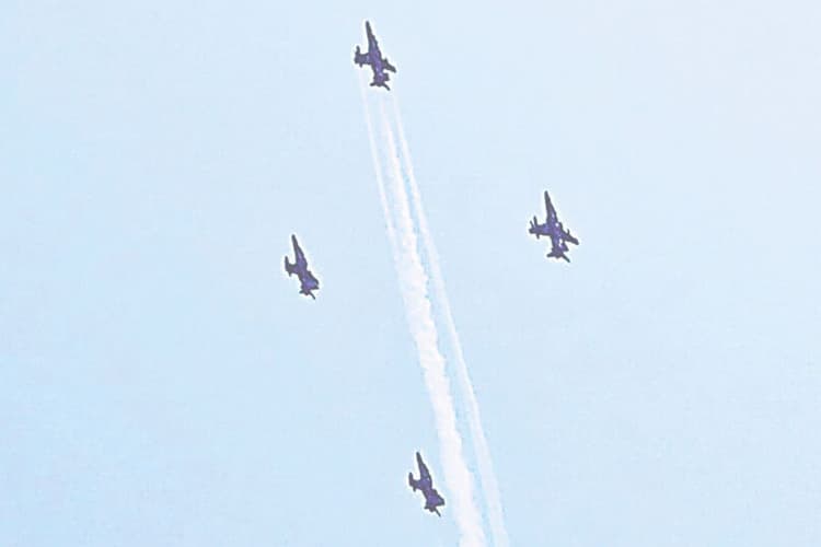 Indian Airforce Air Show in Ranchi| झारखंड की राजधानी रांची के नामकुम के खोजाटोली स्थित आर्मी मैदान और उसके आसपास 20 अप्रैल की रात 11 बजे तक निषेधाज्ञा लगा दी गयी है. निषेधाज्ञा शुक्रवार 18 अप्रैल को सुबह 6 बजे से प्रभावी हो गयी है. इससे पहले, गुरुवार को भारतीय वायुसेना के एयर शो का रिहर्सल हुआ. सुबह करीब 10:15 बजे से 10:45 बजे तक सूर्य किरण टीम ने 6 एयरक्राफ्ट के साथ रिहर्सल किया. दोपहर 2 बजे दोबारा रिहर्सल किया गया. एयर शो का रिहर्सल शुरू होते ही अचानक तेज गर्जन के साथ नामकुम इलाका गूंज उठा. 6 एयरक्राफ्ट एक साथ आसमान को चिरते हुए आगे बढ़े. आसमान में करतब दिखा रहे एयरक्राफ्ट को पहली बार देख ग्रामीण शुरू में डर गये, लेकिन बाद में जब उन्हें एयर शो का पता चला, तो वे उत्साहित नजर आये. रिहर्सल के दौरान 4 एयरक्राफ्ट एक साथ और 2 एयरक्राफ्ट उनसे कुछ दूरी पर दायें-बायें मुड़कर करतब दिखाते नजर आये.