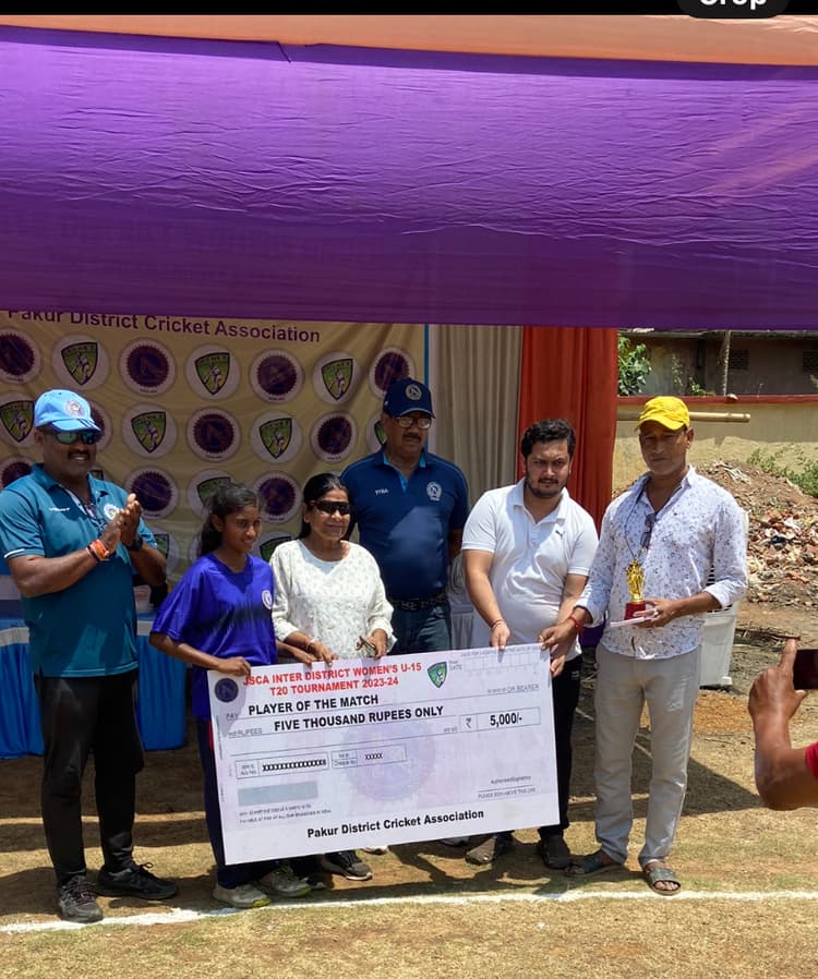 फोटो है, 30 निरसा 1 में मैन ऑफ द मैच का पुरस्कार लेती आनंदी. प्रतिनिधि, चिरकुंडा झारखंड राज्य क्रिकेट एसोसिएशन द्वारा पाकुड़ में आयोजित अंडर 15 महिला क्रिकेट टूर्नामेंट के मैच में धनबाद ने रामगढ़ को 10 विकेट से हराया. पहले बल्लेबाजी करते हुए रामगढ़ की टीम ने निर्धारित 20 ओवर में 7 विकेट के नुकसान पर 103 रन बनाये. श्रेया प्रिया ने सर्वाधिक 25 रन बनाये. कप्तान अंकिता मौर्या व किंजल ने 2-2 विकेट व आनंदी कुमारी ने 1 विकेट लिया. जवाबी पारी खेलते हुए धनबाद ने मात्र 9.3 ओवर में 107 रन बनाकर 10 विकेट से मैच जीत लिया. अन्नू कुमारी यादव ने 34 व आनंदी कुमारी ने नाबाद 31 रन बनाये. आनंदी को मैन ऑफ द मैच घोषित किया गया. माही क्रिकेट क्लब कुमारधुबी व जेएससीए के आजीवन सदस्य अभिजीत घोष, क्लब की सचिव दोएल घोष, कोच भगीरथ रजवार, कुंदन कुमार राज ने माही क्रिकेट क्लब की खिलाड़ियों के प्रदर्शन की सराहना करते हुए आगे और बेहतर करने का भरोसा जताया है.