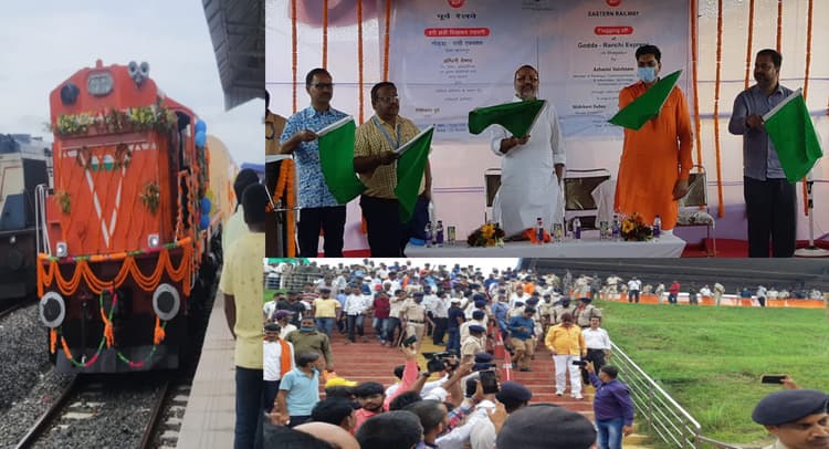 IRCTC/Indian Railways News (गोड्डा) : बुधवार का दिन गोड्डा के लिए ऐतिहासिक रहा. गोड्डा सांसद डाॅ निशिकांत दूबे ने गोड्डा से रांची तक जाने वाली सीधी ट्रेन का विधिवत उद्घाटन कर नयी ट्रेन सेवा की शुरुआत किया. डॉ दूबे रेलवे स्टेशन पर बने मंच से हरी झंडी दिखाकर ट्रेन को रवाना किया. वहीं, स्थानीय विधायक अमित मंडल व मालदा डिवीजन के डीआरएम यतींद्र कुमार अतिथि के तौर पर हरी झंडी दिखाकर इस ट्रेन को रवाना किया. वीडियो काफ्रेंसिंग के माध्यम से पूर्वी रेलवे के जीएम अरुण अरोडा ने भी हरी झंडी दिखायी. जबकि रेल मंत्री अश्विनी वैष्णव इस कार्यक्रम में शामिल नहीं हो पाये.