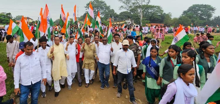 प्रधानमंत्री नरेंद्र मोदी के आह्वान पर बुधवार को अमृत महोत्सव के तहत देश के सेना के सम्मान में हर घर तिरंगा अभियान को लेकर ब्लॉक चौक से शंकर चौक तक तिरंगा यात्रा निकाली गयी. यात्रा का नेतृत्व पूर्व सांसद रामटहल चौधरी ने किया. यात्रा में मुख्य अतिथि राज्यसभा सांसद आदित्य प्रसाद साहू ने छात्र-छात्राओं से कहा कि देश के जवान सुरक्षा में दिन-रात बॉर्डर पर सेवा देते रहते हैं, तभी हम चैन की नींद सोते हैं. ऑपरेशन सिंदूर में देश के तीनों सेनाओं ने दुश्मनों के घर में घुस कर मारने का कार्य किया. इसलिए वीर शहीदों के सम्मान में हर घर तिरंगा व तिरंगा यात्रा कर उनका हौसला बढ़ाने का कार्य किया जा रहा है. हम सभी को भी देश में संविधान व तिरंगा का सम्मान करना चाहिए. पूर्व सांसद रामटहल चौधरी ने कहा कि तिरंगा हमारा आन बान और शान है. इसका सम्मान करना हर भारतीय का कर्तव्य है. तिरंगा यात्रा में एसएस प्लस टू उच्च विद्यालय, आरटीसी कॉलेज, प्रोजेक्ट बालिका उच्च विद्यालय, कलकता पब्लिक स्कूल, माउंट कार्मेल स्कूल, सरस्वती शिशु विद्या मंदिर, शिवाजी प्रतिभा उच्च विद्यालय के छात्र-छात्राएं शामिल हुए. यात्रा में पूर्व विधायक रामकुमार पाहन, बीडीओ कामेश्वर बेदिया, अमर नाथ चौधरी, रंधीर चौधरी, मानकी राजेंद्र शाही, दिलीप मेहता, राजकिशोर साहू, पुष्पा कुमारी, सपना कुमारी, रोहित साहू, अलख नाथ महतो, दीपक बड़ाइक, शशि मेहता, अलखनाथ महतो, लक्ष्मण साहू आदि शामिल थे.डिस्क्लेमर: यह प्रभात खबर समाचार पत्र की ऑटोमेटेड न्यूज फीड है. इसे प्रभात खबर डॉट कॉम की टीम ने संपादित नहीं किया है