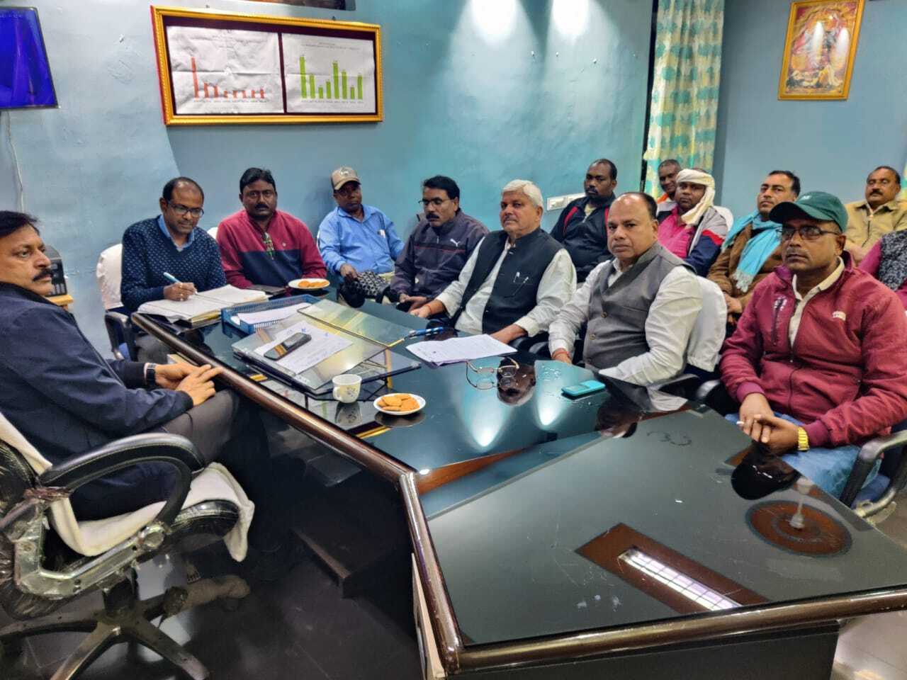 डकरा. केडीएच परियोजना कार्यालय में गुरुवार को जनता मजदूर संघ के साथ प्रबंधन की नौ सूत्री मांग को लेकर बैठक हुई. प्रबंधन ने छह मुद्दों पर अपनी सहमति दी. सभी कर्मचारियों का नाम सेवा पुस्तिका में सुधारना, ग्रेच्युटी नॉमिनेशन फॉर्म भरने की सहमति, कर्मचारियों का ऑनलाइन मेडिकल स्मार्ट कार्ड बनाने, नया सीएमपीएफ नंबर अलॉटमेंट करने, पदोन्नतियों को प्राथमिकता के आधार पर करने की सहमति बनी है. इसके अलावा संडे ड्यूटी के लिए चार दिन की उपस्थिति को समाप्त करने और सिविल विभाग का एएमसी निरीक्षण का कार्य क्षेत्रीय प्रबंधन की ओर से करने का निर्णय लिया गया. बैठक में प्रबंधन की ओर से पीओ अनिल कुमार सिंह, कार्मिक पदाधिकारी नवनीत शेखर, खान प्रबंधक राघवेंद्र गांधी, अभय वर्मा व यूनियन की ओर से गोल्टेन प्रसाद यादव, धीरेंद्र प्रताप सिंह, अजय चौहान, अमिताभ बच्चन, टेकलाल महतो, गणेश ठाकुर शर्मा, बिरजू लोहार, मनोज चौहान, संजय रवि, बंधु पवन कुमार, सरोज कुमार, हीरालाल उरांव, राम पुकार नोनियां, मो समीर अंसारी आदि मौजूद थे.
