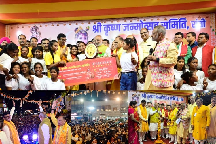 झारखंड के राज्यपाल सीपी राधाकृष्णन ने कहा कि कोई भी सनातन धर्म का नाश नहीं कर सकता. सनातन धर्म को कोई मिटा नहीं सकता. हमें प्रण लेना है कि भारत को शीर्ष स्थान पर पहुंचाकर दम लेंगे. भगवान श्री कृष्ण की कृपा आप सभी पर बनी रहे. हर हर शंकर, जय जय शंकर से उन्होंने अपने भाषण की शुरूआत की. मंच से जय श्री राम का नारा लगाया. उन्होंने कहा कि भारत माता के पवित्र चरणों को स्पर्श करता हूं और नमन करता हूं. उन्होंने कहा कि जन्माष्टमी के इस अवसर पर आप इतनी बड़ी संख्या में उपस्थित हुए. जन्माष्टमी के इस शुभ अवसर पर झारखंडवासियों को शुभकामनाएं देता हूं. भगवान श्री कृष्ण के जन्मोत्सव पर यह कार्यक्रम होना सौभाग्य की बात है. यह अत्यंत खुशी का विषय है कि सांसद संजय सेठ के नेतृत्व में यह आयोजन हो रहा है. मुझे जब जानकारी मिली तो इस आयोजन में आप सभी लोगों से मिलने पहुंच गया. उन्होंने कहा कि युवा का मतलब धैर्य, उत्साह, समर्पण है. उन्होंने कहा कि आज यहां उपस्थित हर युवा श्री कृष्ण का रूप है. आयोजन समिति की ओर से रांची के सांसद व समिति के संरक्षक संजय सेठ ने अतिथियों का स्वागत किया. उन्होंने संस्था के द्वारा प्रारंभिक कार्यों की पूर्ण जानकारी दी. इस अवसर पर आजसू प्रमुख सुदेश महतो ने भी संबोधित किया.