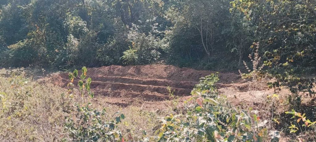 फ़ोटो 1 – कुआं व डोभा निर्माण से हटायी गयी जेसीबी मशीन.