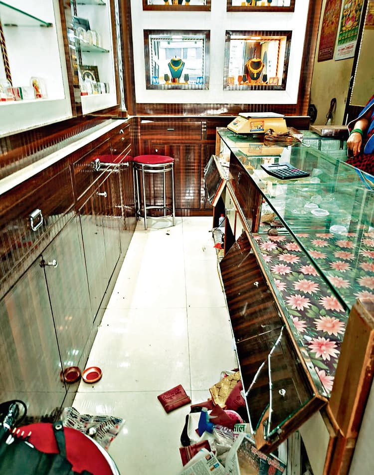 रांची़ लोअर बाजार थाना क्षेत्र के कांटाटोली नेताजी नगर के समीप स्थित विजय ज्वेलर्स नामक दुकान के शटर का ताला तोड़ कर चोरों ने करीब 15 लाख के जेवरात की चोरी कर ली. वहीं ज्वेलरी दुकान से सटे मौलाना आजाद कॉलोनी निवासी मो नईम की चाय दुकान के शटर का ताला तोड़कर 10 किलोग्राम चाय और करीब डेढ़ लाख रुपये नकद चुरा लिये. घटना को लेकर ज्वेलरी दुकान की संचालिका महिला केएम मल्लिक रोड निवासी सोनी देवी ने लोअर बाजार थाना में केस दर्ज कराया है. पुलिस दुकान के समीप लगे सीसीटीवी कैमरा के फुटेज के आधार पर चोरों का सुराग ढूंढने का प्रयास कर रही है. सोनी देवी के अनुसार वह रात में दुकान बंद कर घर चली गयी थी. इस दौरान दुकान में सभी सामान सुरक्षित थे. जब वह सुबह में दुकान खोलने पहुंची, तब दुकान के शटर का ताला टूटा पाया. अंदर जाकर जांच करने पर चांदी के करीब 12 किलोग्राम 376 ग्राम जेवरात और सोने के 70 ग्राम 890 मिलीग्राम जेवरात गायब मिले. वहीं दुकान से सटे चाय की दुकान की जांच करने पर नकद डेढ़ लाख रुपये और 10 किलो चाय के चोरी होने की जानकारी मिली. घटना की सूचना देने के बाद पुलिस ने दुकान आकर मामले की जांच की. महिला के अनुसार चोरी गये जेवरात का वजन अधिक भी हो सकता है, क्योंकि जो तैयार जेवरात हॉल सेलर के पास से बेचने के लिए लाये जाते हैं, उन्हें बिना वजन किये ही सजाकर रख दिया जाता है.