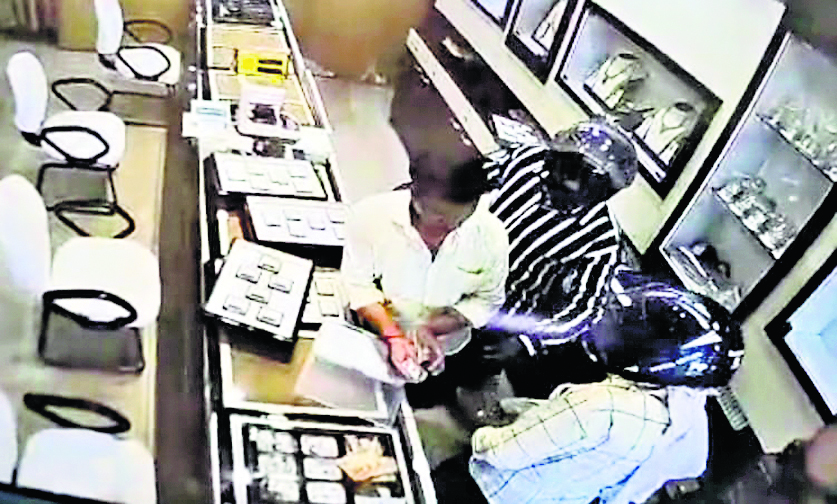 बाइक सवार चार अपराधियों ने हथियार के बल पर राजधानी के बिरसा चौक के समीप स्थित डीपी ज्वेलर्स से 1.4 करोड़ रुपये के जेवर और ढाई लाख रुपये नकद लूट लिये. वारदात शुक्रवार शाम करीब 4:00 बजे हुई. हेलमेट पहने हुए चारों अपराधी करीब आधे घंटे तक दुकान में लूटपाट की. इस दौरान विरोध करने पर उन्होंने दुकान के संचालक रामनाथ वर्मा के बेटे ओम वर्मा पर गोली चला दी, जो उसके हाथ में लगी है. वहीं, गोली का छर्रा लगने से दुकान के संचालक और उनके मित्र भी जख्मी हो गये. वारदात के बाद अपराधी बाइक पर सवार होकर हथियार लहराते हुए हिनू चौक और एयरपोर्ट के रास्ते हेथू की ओर भाग निकले. वारदात के वक्त दुकान से महज 50 गज दूर बिरसा चौक पर ट्रैफिक पुलिस मौजूद थी. डीपी ज्वेलर्स की दुकान बिरसा चौक से हटिया जानेवाले रास्ते में स्थित है. यहां हुई लूट की पूरी वारदात दुकान में लगे सीसीटीवी कैमरे में कैद हो चुकी है. शाम करीब 4:00 बजे दो बाइक पर हेलमेट पहने हुए चार अपराधी यहां पहुंचे. ज्वेलरी शॉप में घुसते ही पिस्टल दिखाते हुए अपराधियों ने दुकान संचालक रामनाथ वर्मा, उनके पुत्र ओम वर्मा और दो कर्मियों को चुपचाप किनारे बैठने को कहा. वे बैठते इससे पहले ही अपराधियों ने दुकान के संचालक पिता-पुत्र को कब्जे में ले लिया और उन्हें लॉकर रूम की ओर ले गये. जबकि, दोनों कर्मियों को दुकान के बाथरूम में बंद कर दिया. अपराधियों ने पिता-पुत्र से लॉकर खोलने को कहा. इसी बीच ओम वर्मा के दोस्त दिलीप कुमार दुकान में पहुंच गये. अपराधियों ने उन्हें भी कब्जे में ले लिया. जब पिता-पुत्र लॉकर खाेलने को तैयार नहीं हुए, तो एक अपराधी ने ओम वर्मा पर गोली चला दी, जो उसके हाथ में लगी. उसी गोली का छर्रा रामनाथ वर्मा के पेट और ओम वर्मा के मित्र दिलीप की पीठ में लगी. इसके बाद दूसरे अपराधी ने भी गोली चला दी, जो ज्वेलरी शॉप के शीशे में लगी. दहशत फैलाने के बाद अपराधियों ने आराम से लॉकर और दुकान में रखे सोने-चांदी के करीब 1.40 करोड़ रुपये मूल्य के जेवर, गल्ले में रखे 2.5 लाख रुपये नकद व दुकान संचालक पिता-पुत्र के तीन मोबाइल फोन अपने बैग में भर लिये. शाम 4:30 बजे अपराधी दुकान से निकल कर फरार हो गये.वारदात के बाद जगन्नाथपुर थाना पहुंचे पिता-पुत्र :