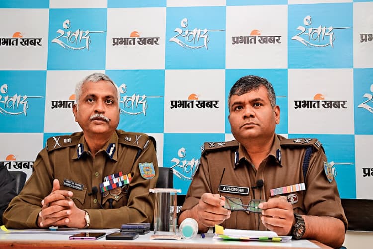एडीजी अभियान संजय आनंदराव लाठकर व आइजी अभियान अमोल वीणुकांत होमकर प्रभात खबर कार्यालय में आयोजित संवाद कार्यक्रम में गुरुवार को शामिल हुए. बूढ़ा पहाड़ में नक्सलियों के खिलाफ अभियान में महत्वपूर्ण भूमिका निभानेवाले दोनों अधिकारियों ने झारखंड पुलिसिंग पर अपनी बातें रखीं.