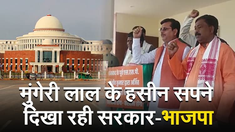 झारखंड विधानसभा में भारतीय जनता पार्टी (भाजपा) के विधायकों ने एक बार फिर सदन से लेकर सड़क तक आंदोलन की चेतावनी दी है. झारखंड विधानसभा के बजट सत्र के चौथे दिन बुधवार (28 फरवरी) को मुख्य विपक्षी दल ने साफ कहा है कि सरकार झारखंड प्रदेश के लोगों को मुंगेरीलाल के हसीन सपने दिखा रही है.