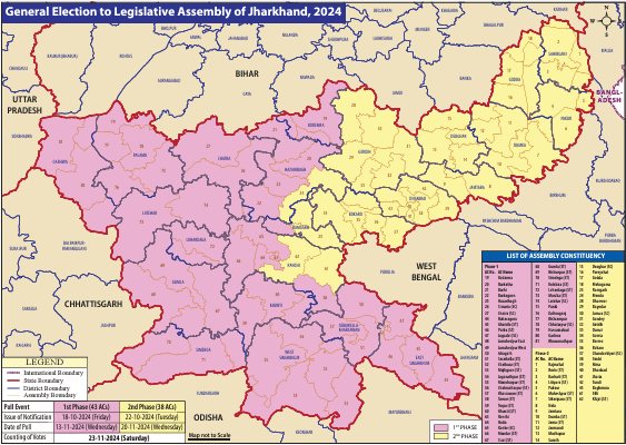 झारखंड की 81 विधानसभा सीटों पर 13 और 20 नवंबर को वोटिंग, 23 नवंबर को होगी मतगणना
