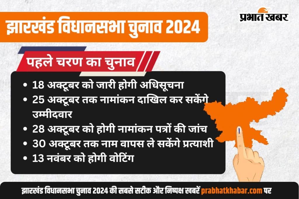 Jharkhand Assembly Election 2024 Date: चुनाव आयोग ने झारखंड की 81 विधानसभा सीटों पर चुनाव का ऐलान कर दिया है. आपके क्षेत्र में कब होगा मतदान यहां देखें.