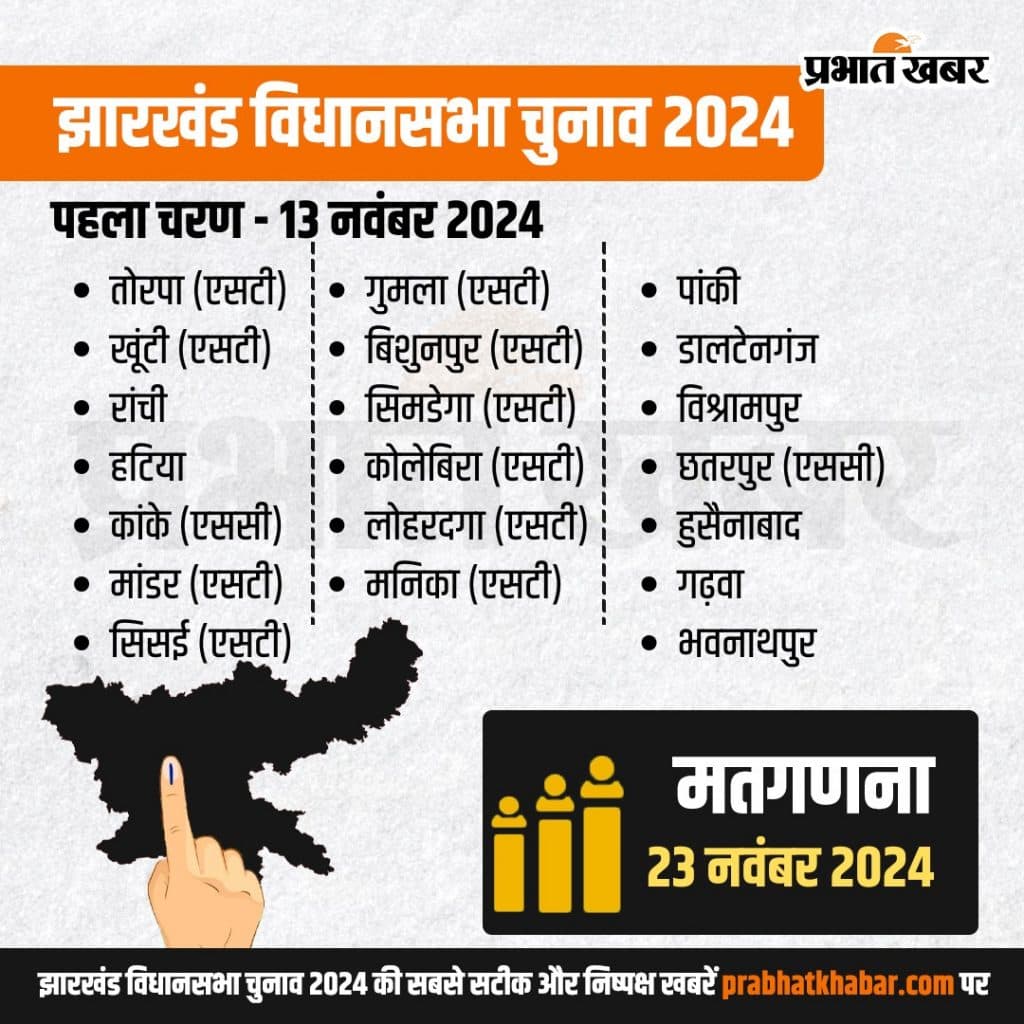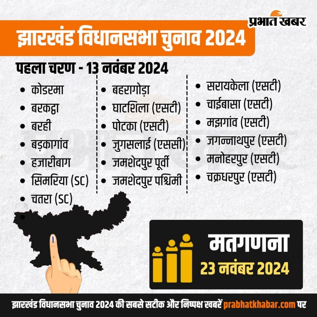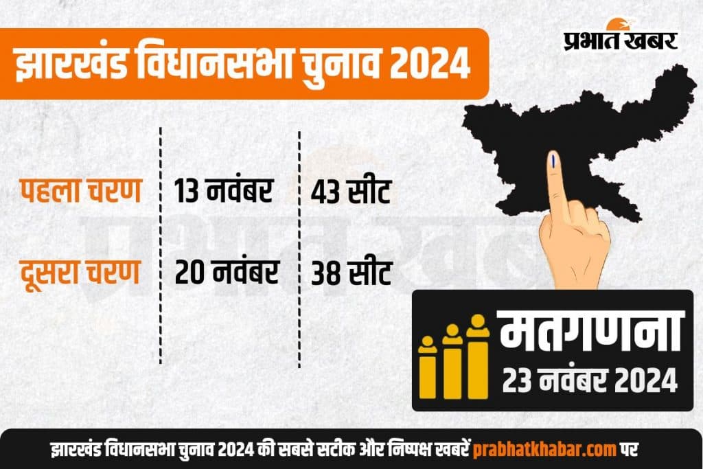 Jharkhand Assembly Election 2024 Date: झारखंड की 81 विधानसभा सीटों पर चुनाव की घोषणा कर दी गई है. भारत के मुख्य निर्वाचन आयुक्त राजीव कुमार ने मंगलवार को नई दिल्ली में प्रेस कॉन्फ्रेंस करके झारखंड विधानसभा चुनाव 2024 (Jharkhand Assembly Election 2024 Date) की घोषणा की. चुनाव आयुक्त ने बताया कि झारखंड में इस बार 2 चरणों में वोटिंग होगी. पहले चरण की वोटिंग 13 नवंबर को और 20 नवंबर को दूसरे चरण की वोटिंग होगी. 23 नवंबर को मतगणना होगी.