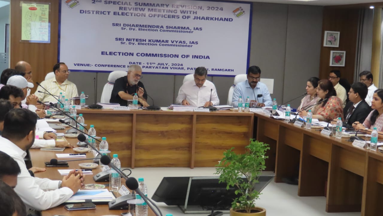 बैठक के बाद ही झारखंड विधानसभा चुनाव की तारीख की अंतिम रूपरेखा तय होगी. बैठक में भारत निर्वाचन आयोग के वरीय उप-निर्वाचन आयुक्त धर्मेंद्र शर्मा और नीतेश व्यास प्रधान सचिव अरविंद आनंद झारखंड निर्वाचन आयोग के सीईओ के रवि कुमार शामिल हैं. भारत निर्वाचन आयोग की टीम के सदस्य जिला निर्वाचित पदाधिकारियों से उनके जिलों में चल रहे चुनाव की तैयारियों की जानकारी ले रहे हैं. साथ ही, उन्हें जरूरी दिशा-निर्देश दें रहे हैं.