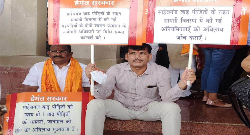 Jharkhand News, साहिबगंज न्यूज (नवीन कुमार) : झारखंड के राजमहल से बीजेपी विधायक अनंत ओझा ने सोमवार को विधानसभा के मानसून सत्र के दौरान झारखंड विधानसभा के बाहर धरना देकर साहिबगंज में बाढ़ पीड़ितों की राहत सामग्री में भेदभाव करते हुए की गई गड़बड़ी के दोषी कर्मचारियों पर विधि सम्मत कार्रवाई की मांग की. सदन में शून्यकाल के दौरान इन्होंने जर्जर मुख्यमार्गों का मामला उठाया. उन्होंने कहा कि झारखंड सरकार अपने चुनावी घोषणा-पत्र के विपरीत नयी नियोजन नीति लायी है, जिससे प्रदेश के युवा अपने आप को छला हुआ महसूस कर रहे हैं.