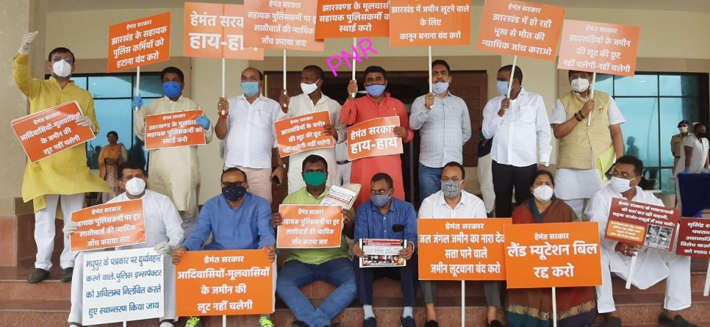 झारखंड विधानसभा मॉनसून सत्र : भाजपा विधायकों का विरोध प्रदर्शन जारी, कार्यकर्ता करेंगे विधानसभा का घेराव