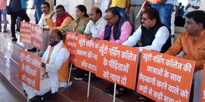 झारखंड विधानसभा के बजट सत्र के दौरान भाजपा के विधायकों ने खूंटी नर्सिंग कॉलेज मामले को लेकर विरोध प्रदर्शन किया. विधायकों ने इस मामले की न्यायिक जांच की मांग की. इन्होंने हाथों में खूंटी नर्सिंग कॉलेज प्रकरण की न्यायिक जांच हो, खूंटी नर्सिंग कॉलेज की पीड़िताओं को न्याय दो, खूंटी नर्सिंग कॉलेज की छात्राओं के साथ छेड़खानी करने वाले आरोपियों को कड़ी से कड़ी सजा मिले की तख्ती ले रखी थी. भाजपा विधायकों में बोकारो से विधायक विरंची नारायण, धनबाद से विधायक राज सिन्हा, पांकी से विधायक डॉ शशिभूषण मेहता, भवनाथपुर विधायक भानुप्रताप शाही, कांके विधायक समरी लाल समेत अन्य बीजेपी विधायक शामिल थे.
