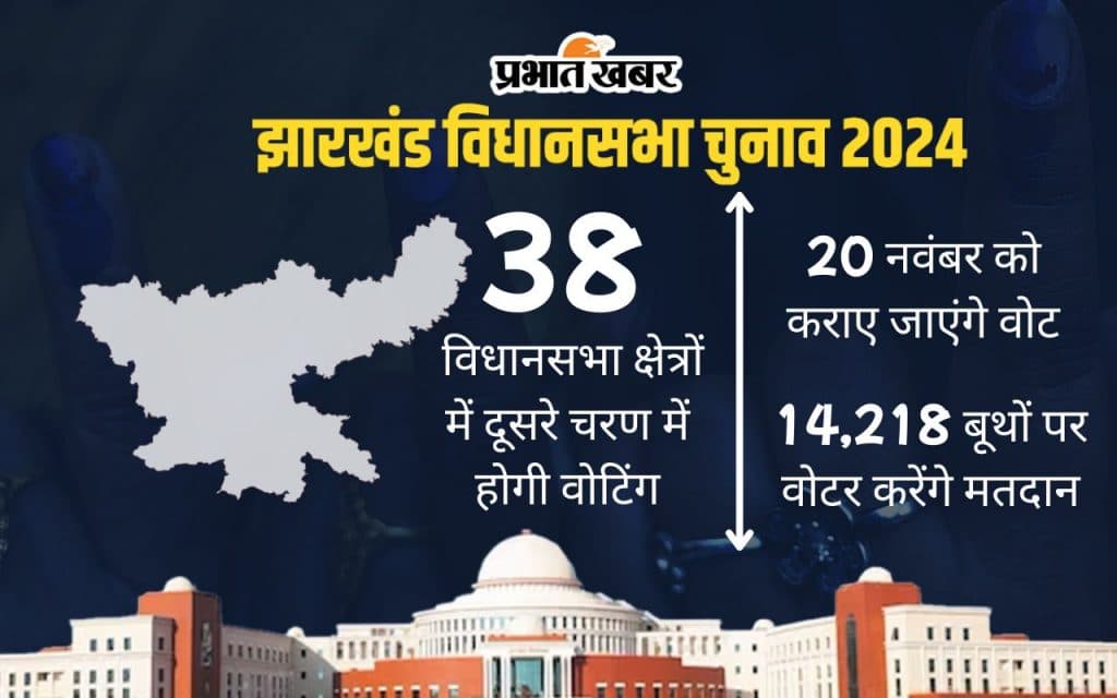Jharkhand Chunav 2024: झारखंड विधानसभा चुनाव के दूसरे चरण का प्रचार 18 नवंबर की शाम को थम जाएगा. 20 नवंबर को 14218 बूथ पर मतदान कराए जाएंगे.