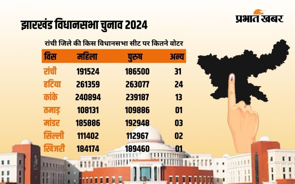 रांची जिले के विधानसभा क्षेत्रों में कितने मतदाता