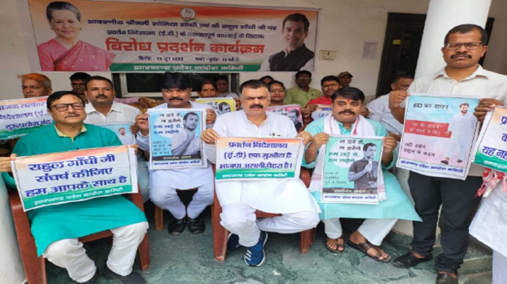 Jharkhand: राहुल गांधी को ED दफ्तर बुलाए जाने के खिलाफ झारखंड कांग्रेस का विरोध प्रदर्शन