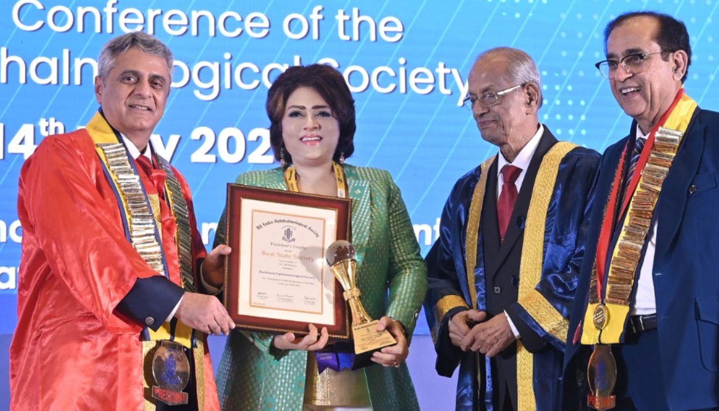 ऑल इंडिया नेत्र सोसाइटी ने झारखंड नेत्र सोसाइटी को सर्वश्रेष्ठ नेत्र सोसाइटी के खिताब से नवाजा है. वैज्ञानिक एवं शैक्षणिक गतिविधियों के लिए झारखंड नेत्र सोसाइटी को यह अति विशिष्ट ट्रॉफी प्रदान किया गया. झारखंड नेत्र सोसाइटी की साइंटिफिक कमेटी की मैनेजिंग कमेटी मेंबर सह चेयरपर्सन डॉ भारती कश्यप ने केरल के कोच्चि शहर में स्थित लूलू बोल्गट्टी इंटरनेशनल कॉन्वेंशन सेंटर में यह पुरस्कार ग्रहण किया.