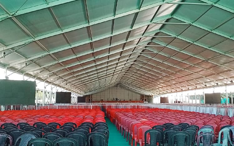 पूरे कार्यक्रम स्थल को कई हिस्सों में बांट कर लोगों के बैठने की व्यवस्था की गई है. जिस तरह की व्यवस्था की गई है, उसके मुताबिक पूरे पंडाल में लगभग 5000 लोग बैठेंगे. वहीं कार्यक्रम स्थल के प्रवेश द्वार को आकर्षक ढंग से बनाया जा रहा है. इस प्रवेश द्वार को बांस कमच्चियों से बनाया गया है. यहीं पर लगभग 12 मैटल डिटेक्टर प्रवेश द्वार भी लगाए हैं. पूरे आयोजन स्थल में सुरक्षा के पुख्ता इंतजाम किए गए हैं. मुख्य मंच के ठीक सामने, इसके अतिरिक्त दाएं और बाएं हिस्से में लगभग 6 स्क्रीन लगाए गए है. जहां से कार्यक्रम का सीधा देखा जा सकेगा.