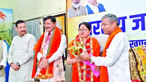 रांची. भारत सरकार में नव नियुक्त मंत्रियों के स्वागत समारोह में भाजपा के प्रदेश अध्यक्ष बाबूलाल मरांडी ने कहा कि झारखंड के विकास की गाड़ी को तेजी से बढ़ाना है, तो झारखंड को जेएमएम, कांग्रेस और बिचौलियों से बचाना होगा. झारखंड सरकार भारत सरकार के पैसों का दुरुपयोग कर रही है. उन्होंने राज्य की जनता का भी आभार प्रकट करते हुए कहा कि इंडी एलायंस के द्वारा लगातार दुष्प्रचार और भ्रम फैलाये जाने के बावजूद जनता ने एनडीए गठबंधन पर भरोसा जताया. झारखंड में सर्वाधिक नौ सीट एनडीए को दिया. श्री मरांडी ने कहा कि पिछले साढ़े चार वर्षों से राज्य की जनता भ्रष्ट निकम्मी सरकार से परेशान है. पानी-बिजली जैसी बुनियादी सुविधाओं के लिए राज्य में हाहाकार मचा है. दूसरी ओर भारत सरकार द्वारा नल जल योजना के लिए भेजे गये करोड़ों रुपये भ्रष्टाचार की भेंट चढ़ गये. श्री मरांडी ने कहा कि भाजपा और एनडीए सरकार की उपलब्धियां अपार है. राज्य की जनता को झामुमो, कांग्रेस और राजद के कुशासन, लूट, भ्रष्टाचार से मुक्ति दिलाकर प्रदेश में आगामी विधानसभा चुनाव में भाजपा के नेतृत्व में एनडीए की डबल इंजन की सरकार बनानी है. जनता एनडीए के काम में विश्वास करती है. इंडी गठबंधन के लूटने और कमाने की बात में नहीं. इससे पूर्व शपथ ग्रहण के बाद पहली बार रांची पहुंचे दोनों मंत्रियों का भाजपा कार्यालय में स्वागत किया गया. एयरपोर्ट से जुलूस की शक्ल में दोनों नेताओं को हरमू स्थित प्रदेश कार्यालय लाया गया. प्रदेश कार्यालय के मुख्य द्वार पर महिला मोरचा अध्यक्ष आरती सिंह के नेतृत्व में बहनों ने किया पारंपरिक स्वागत किया. इससे पूर्व दोनों मंत्रियों ने बिरसा चौक पर भगवान बिरसा मुंडा की प्रतिमा पर माल्यार्पण कर उन्हें नमन किया. प्रदेश कार्यालय में पहुंचकर पार्टी के डॉ श्यामा प्रसाद मुखर्जी की प्रतिमा पर पर श्रद्धा सुमन अर्पित किया. इस मौके पर संगठन महामंत्री कर्मवीर सिंह, प्रदेश महामंत्री एवं सांसद आदित्य साहू, सांसद दीपक प्रकाश, विधायक नवीन जायसवाल, समरी लाल, आरती कुजूर, सीमा पासवान, हेमंत दास, डॉ यदुनाथ पांडे, शिवपूजन पाठक, रामचंद्र केसरी, काजल प्रधान, गंगोत्री कुजूर, सत्यनारायण सिंह, सुनील साहू, अरुण झा, मुनचुन राय, रमेश सिंह, शोभा यादव, लक्ष्मीचंद्र दीक्षित, केके गुप्ता, बलराम सिंह, राजू सिंह, जितेंद्र वर्मा, नीरज सिंह, ललिता ओझा, राहुल चौधरी, संदीप वर्मा, संजय जायसवाल, अनिता वर्मा, राम लगन राम, मदन सिंह, गोपाल सोनी, उमेश यादव, विकास रवि, दीपक शाह, सुभाष अग्रवाल, रामजी प्रसाद, पप्पू वर्मा, बसंत मित्तल, मनोज दुबे, लक्ष्मी कुमारी, कमाल खान, मनोज दुबे, आरती सिंह, मंजू लता दुबे, सीमा सिंह, सरिता पांडे, मंत्री रेणु तिर्की, नीलम चौधरी, सोनी हेंब्रम, सुचिता 