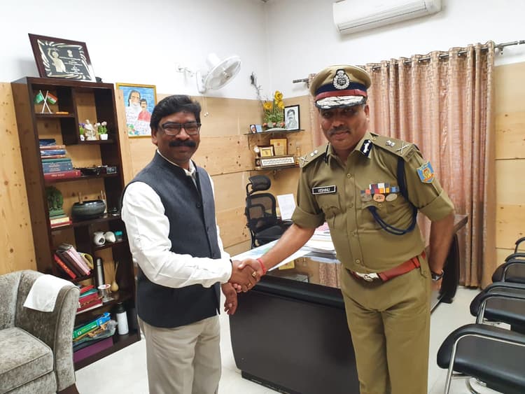 रांची : झारखंड के नये डीजपी एमवी राव ने मुख्यमंत्री हेमंत सोरेन से कांके रोड स्थित उनके आवास पर जाकर शिष्टाचार मुलाकात की. मुख्यमंत्री ने डीजीपी को बधाई दी और उम्मीद जतायी कि वह राज्य की कानून व्यस्था को और मजबूत बनायेंगे. राज्य के नये डीजीपी एमवी राव भी 18 महीने बाद रिटायर हो जायेंगे. केएन चौबे का तबादला दिल्ली कर दिया गया है. झारखंड के पूर्व डीजीपी के एन चौबे ने 9 महीने तक जिम्मेदारी संभाली है.