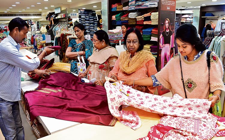 महिलाओं के लिए कॉटन व शिफॉन साड़ी की विशाल रेंज पेश की गयी है. चुनरी प्रिंट काॅटन व शिफॉन साड़ी काफी पसंद की जा रही है. इसके अलावा डिजाइनर साड़ी, लाइट वर्क, सिक्वेंस वर्क, मिरर वर्क जैसे कई वर्क में साड़ियां उपलब्ध हैं. बाजार में कॉटन साड़ी 500-2500 रुपये तक की रेंज में बिक रही है. अन्य डिजाइन में साड़ियां 1,000 रुपये से शुरु हैं.