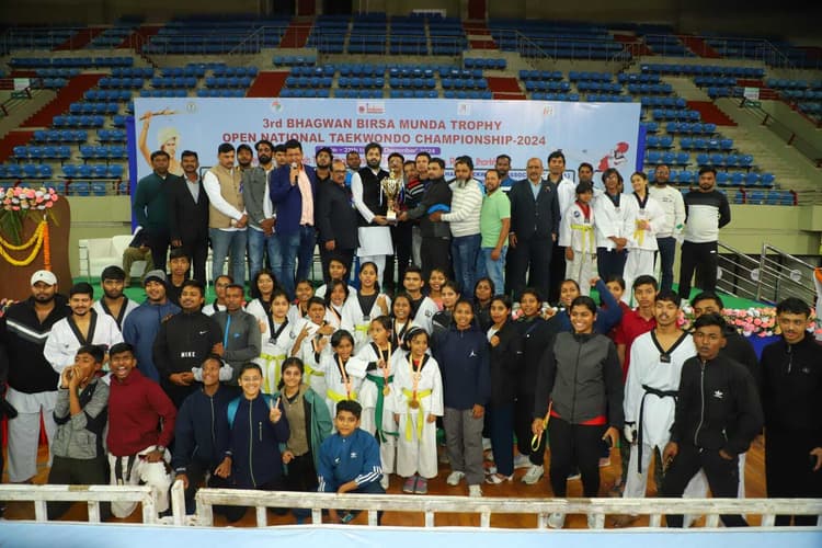 तीसरी भगवान बिरसा मुंडा ट्रॉफी ओपन नेशनल ताइक्वांडो चैंपियनशिप संपन्न रांची. मेगा स्पोर्ट्स कॉम्प्लेक्स के हरिवंश टाना भगत इंडोर स्टेडियम में आयोजित तीसरी भगवान बिरसा मुंडा ट्रॉफी ओपन नेशनल ताइक्वांडो चैंपियनशिप रविवार को संपन्न हो गयी. इसके क्योरूगी वर्ग में झारखंड की टीम पहले स्थान पर रही. ओड़िशा दूसरे और तीसरे स्थान पर उत्तर प्रदेश की टीम रही. वहीं पूमसे वर्ग में ओड़िशा की टीम पहले और बिहार की टीम दूसरे स्थान पर रही. समापन समरोह के मुख्य अतिथि राज्य युवा आयोग के अध्यक्ष कुमार गौरव, विशिष्ट अतिथि पूर्व उप महापौर अजय नाथ शाहदेव, राजीव रंजन व डॉ गुंजन कुमार सिंह ने पदक विजेताओं को पदक, प्रमाण पत्र व ट्रॉफी देकर सम्मानित किया. इस चैंपियनशिप में पूरे देश से 700 से अधिक खिलाड़ी शामिल हुए थे. इस अवसर पर ताइक्वांडो फेडरेशन ऑफ इंडिया के अध्यक्ष फिरोज अहमद, महासचिव प्रभात कुमार शर्मा, आयोजन अध्यक्ष संजय कुमार शर्मा, सचिव मिथलेश कुमार सिंह, मोदस्सर सहित अन्य मौजूद थे.