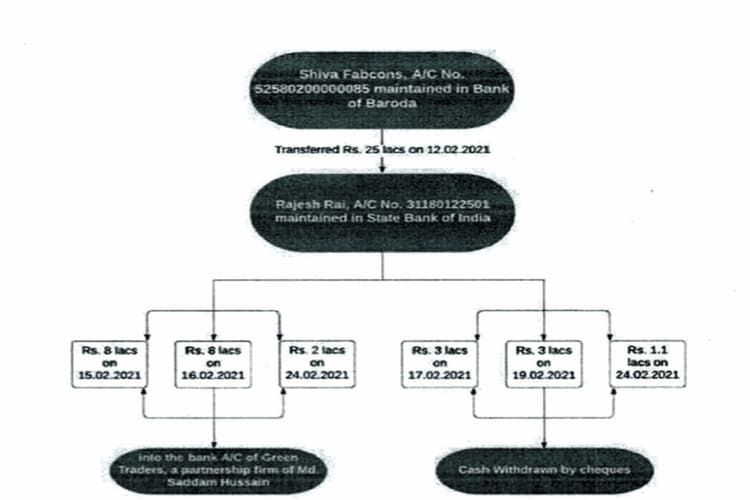 शेष 1.53 करोड़ रुपये के फर्जी भुगतान का दावा सेल डीड में किया गया. राजेश राय ने रुपये मिलने के बाद इसमें से तीन किस्तों में 18 लाख रुपये ग्रीन ट्रेडर्स के खाते में ट्रांसफर किया. राजेश से 15-16 फरवरी 2021 को आठ-आठ लाख रुपये और 24 फरवरी 2021 को दो लाख रुपये ट्रांसफर किये. ग्रीन ट्रेडर्स नामक कंपनी जालसाज गिरोह के सदस्य सद्दाम की है. इसके अलावा राजेश राय ने 17 और 19 फरवरी 2021 को तीन-तीन लाख औ 24 फरवरी को 1.1 लाख रुपये की नकद निकासी की.