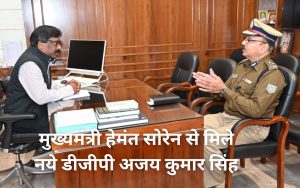 पदभार ग्रहण करने के बाद डीजीपी अजय कुमार सिंह ने मुख्यमंत्री हेमंत सोरेन से मुलाकात की. मुख्यमंत्री कार्यालय की ओर से विज्ञप्ति जारी कर कहा गया कि राज्य के नवनियुक्त पुलिस महानिदेशक अजय कुमार सिंह ने मुख्यमंत्री हेमंत सोरेन के आवासीय कार्यालय में उनसे मुलाकात की. सीएमओ की ओर से इसे शिष्टाचार भेंट बताया गया.