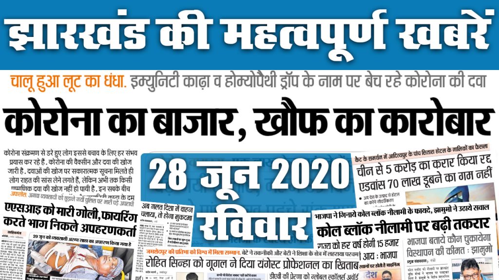 Jharkhand News, 28 June : चल रहा Corona के नाम पर खौफ का बाजार, Immunity बढ़ाने के लिए बेची जा रही दवा, देखें राज्य की टॉप 20 खबरें
