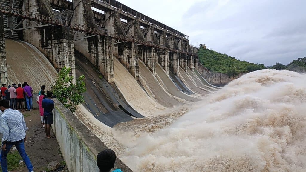 स्लुइस गेट खोलकर बहाया जा रहा अतिरिक्त पानी