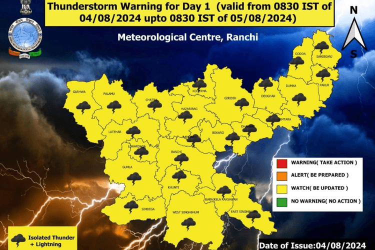 Jharkhand Rain Alert : झारखंड में पिछले तीन दिनों तक साइक्लोनिक सरकुलेशन के असर से तेज बारिश हुई. कई स्थानों पर अत्यधिक बारिश हुई. बारिश का असर जनजीवन पर भी पड़ा. कई स्थानों पर पुल-पुलिया बह गये. अब इसका असर कम हो गया है. मौसम विभाग ने 6 और 7 अगस्त को धनबाद, गिरिडीह, देवघर, गोड्डा, साहिबगंज, पाकुड़, दुमका और जामताड़ा में मूसलाधार बारिश का अनुमान जताया है. विभाग ने इसके लिए येलो अलर्ट जारी कर चेतावनी दी है.
