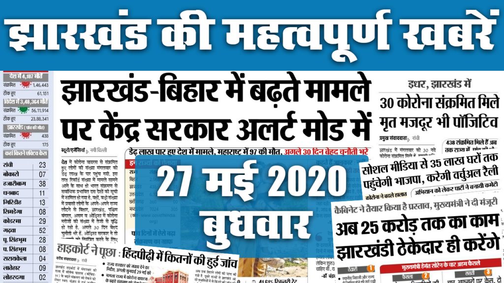 Jharkhand News, 06 July 2020, Coronavirus Latest Updates, Unlock 2.0, shravani mela 2020, shravan 2020, shravan month, shravan month 2020, virtual darshan, watch 20 Important jharkhand news today, Ranchi Simdega Hindpiri Bero Garhwa Jamshedpur Dhanbad deograh Bokaro : आज से श्रावणी मेला 2020 की शुरूआत हो रही है. ऐसे में आज पहली सोमवारी विशेष संयोग के साथ आया है. इधर, झारखंड में नक्सली फिर से सक्रिय हुए है. मानसून भी उग्र नजर आ रहा है. ऐसे में आइये जानते हैं राज्य के प्रमुख शहर रांची, जमशेदपुर, धनबाद और देवघर के साथ-साथ अन्य जिलों की महत्वपूर्ण खबरें. झारखंड में कोरोना से जुड़ी हर के लिए भी यहां से रहें अपडेट…