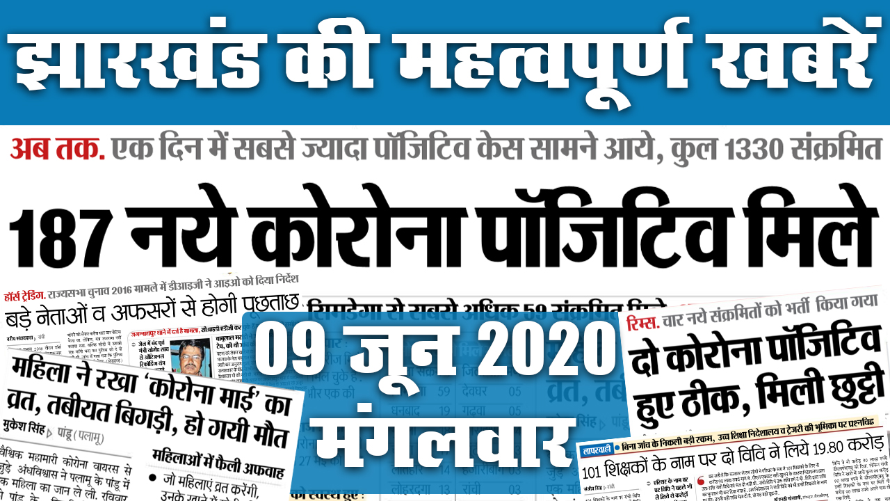 09 June 2020 Coronavirus Latest Updates, Lockdown 5.0 latest news, Unlock 1.0 News, watch 20 Important news of Jharkhand, Ranchi Simdega Hindpiri Bero Garhwa Jamshedpur Dhanbad deograh Bokaro झारखंड के चार प्रमुख शहर रांची, जमशेदपुर, धनबाद और देवघर के आसपास की महत्वपूर्ण खबरें रोज सुबह यहां देखें.